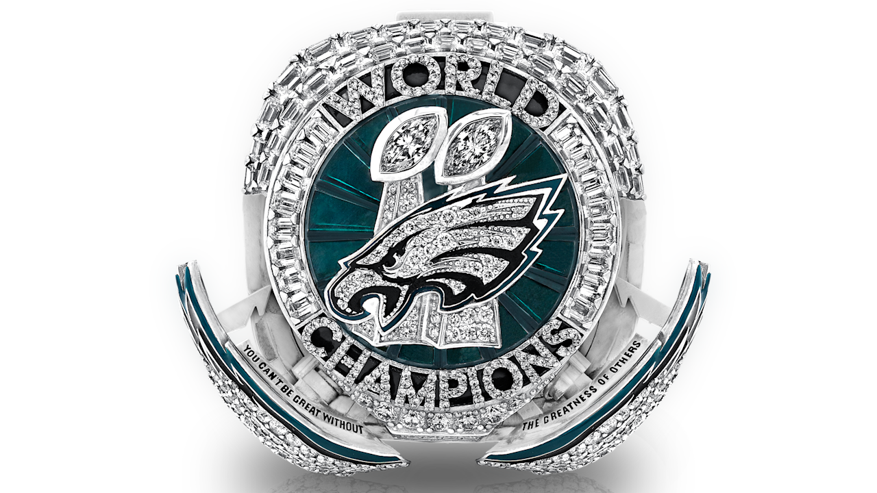 In professional sports, nothing signifies being part of a winning team than a Super Bowl ring. Recently, these rings have become bigger, glitzier, and more astounding. The most recent example, presented to the Philadelphia Eagles a few months ago, feature diamond encrusted Eagle wings that pop out to stimulate flying when a button is pressed.
